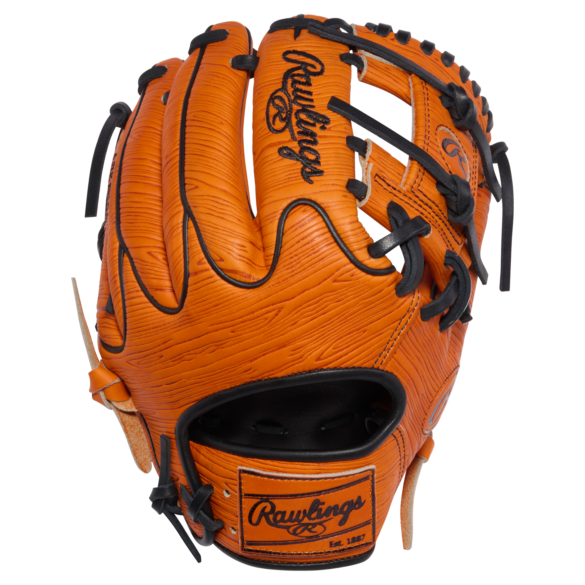 - Confectionné à partir du cuir Heart of the Hide® de renommée mondiale de Rawlings, rehaussé d’un estampage texturé effet grain de bois